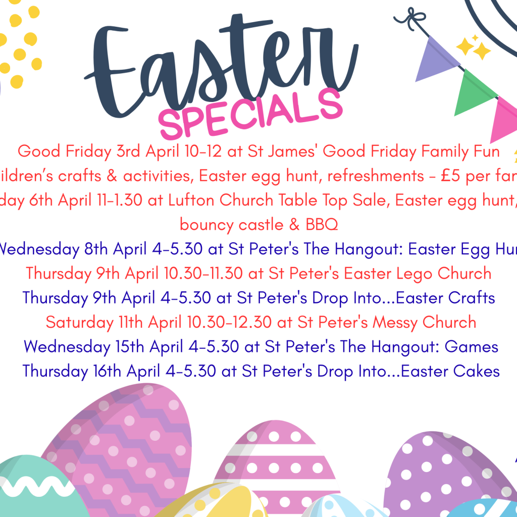 The second Saturday of each month is Messy Church at St Peter’s for families with children aged 0-11. Arts and crafts, bible stories and lots of mess and fun followed by lunch. All welcome!